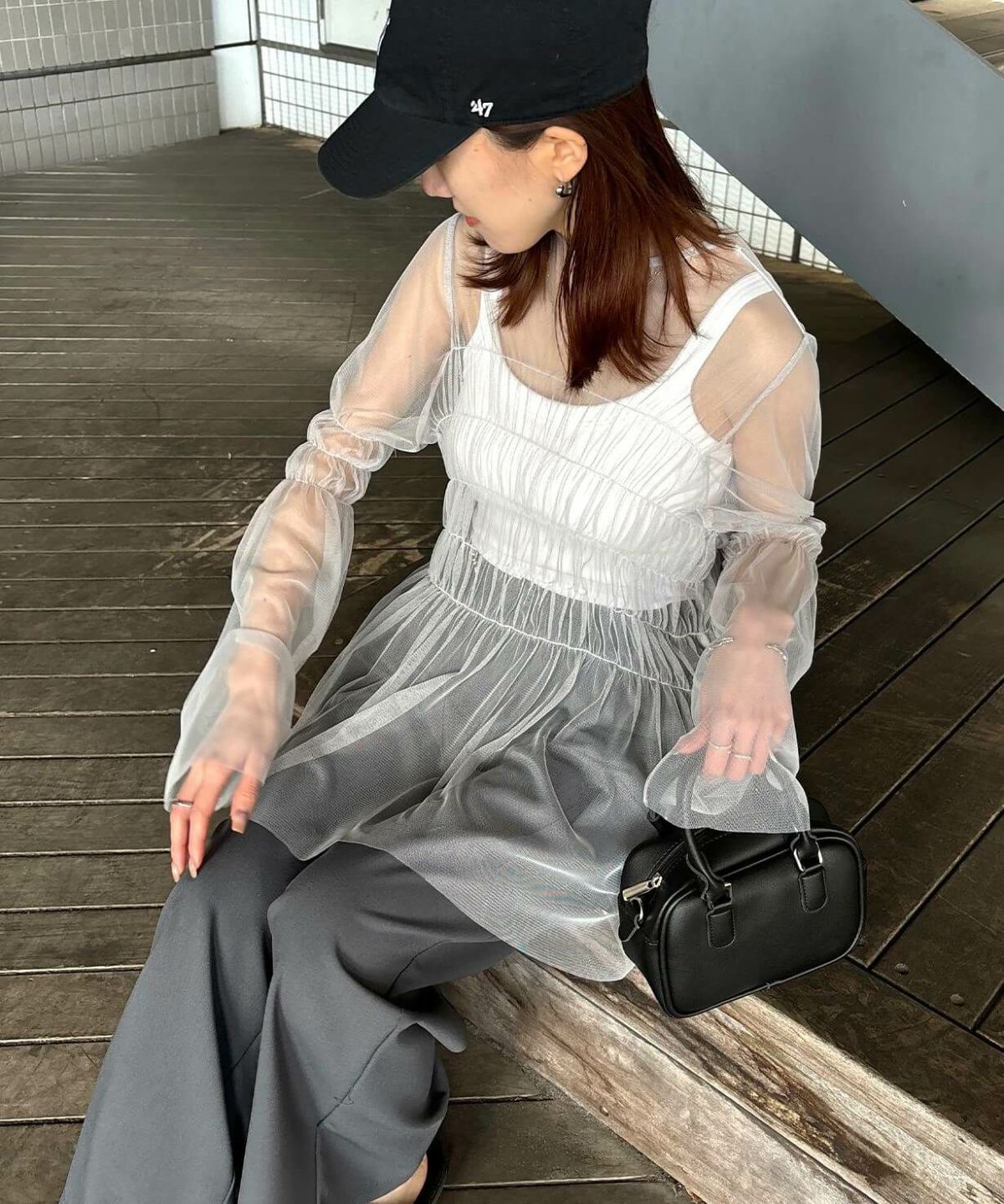他の画像を見る Gathered tulle peplum blouse SALE CLEARANCE 定価 ¥ 2,200 → ¥ 1,100 税込 販売期間 2025/11/21 12:00 〜 2025/12/09 12:00 カートに入れる お気に入りに登録する