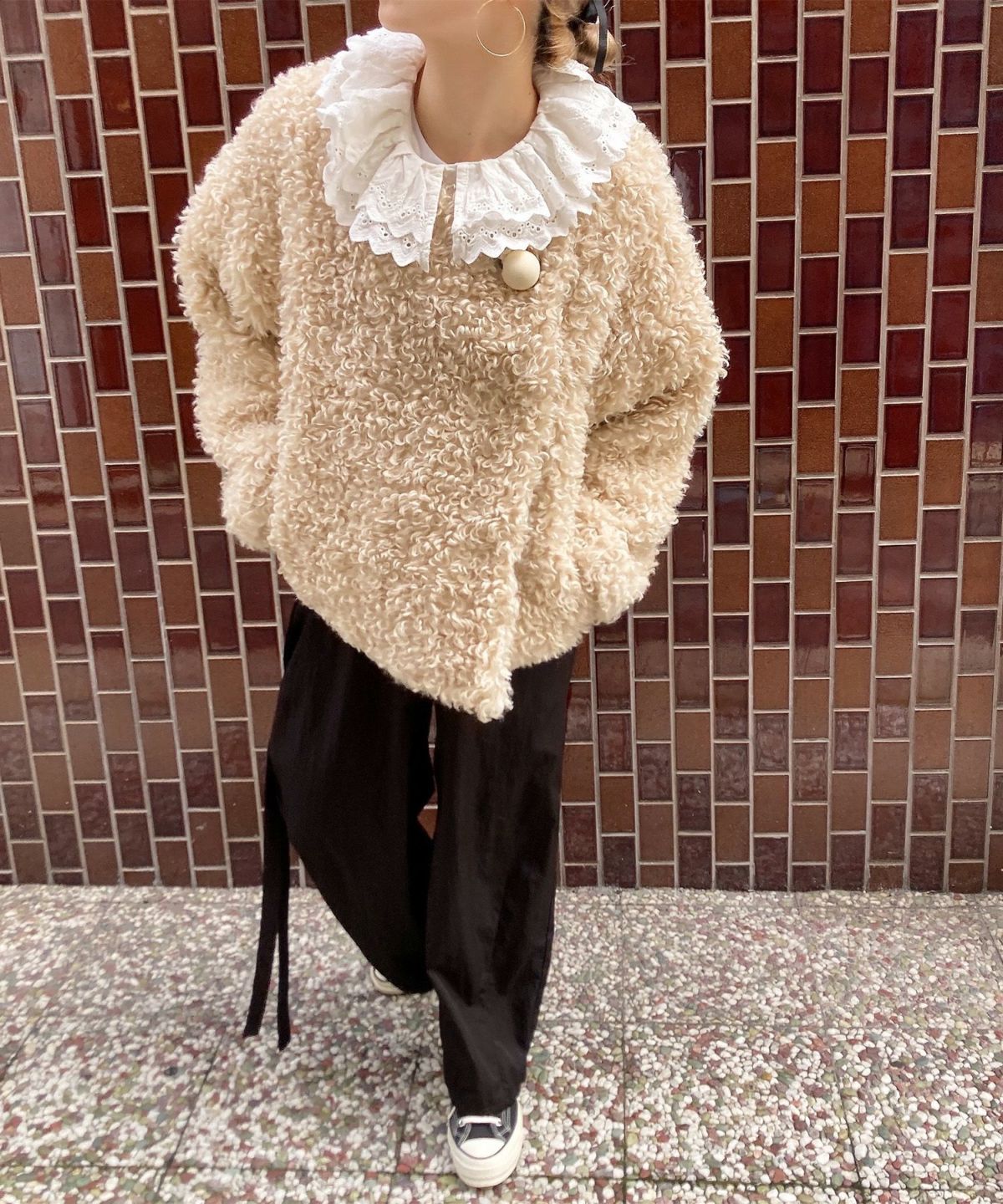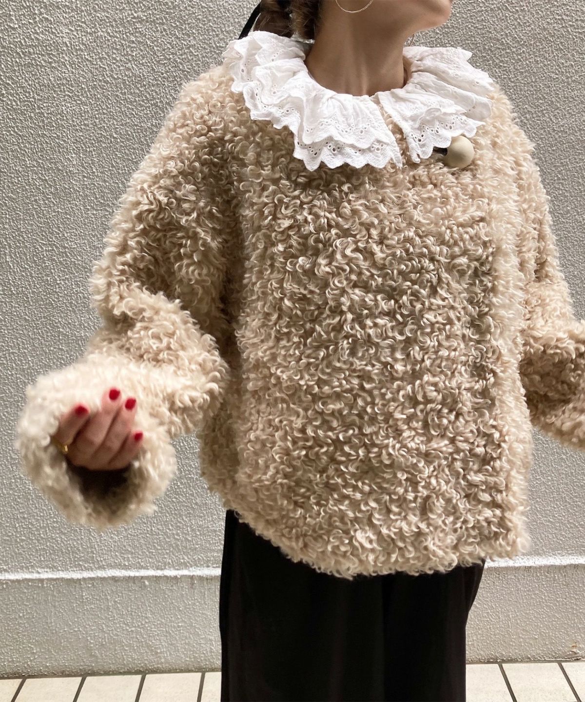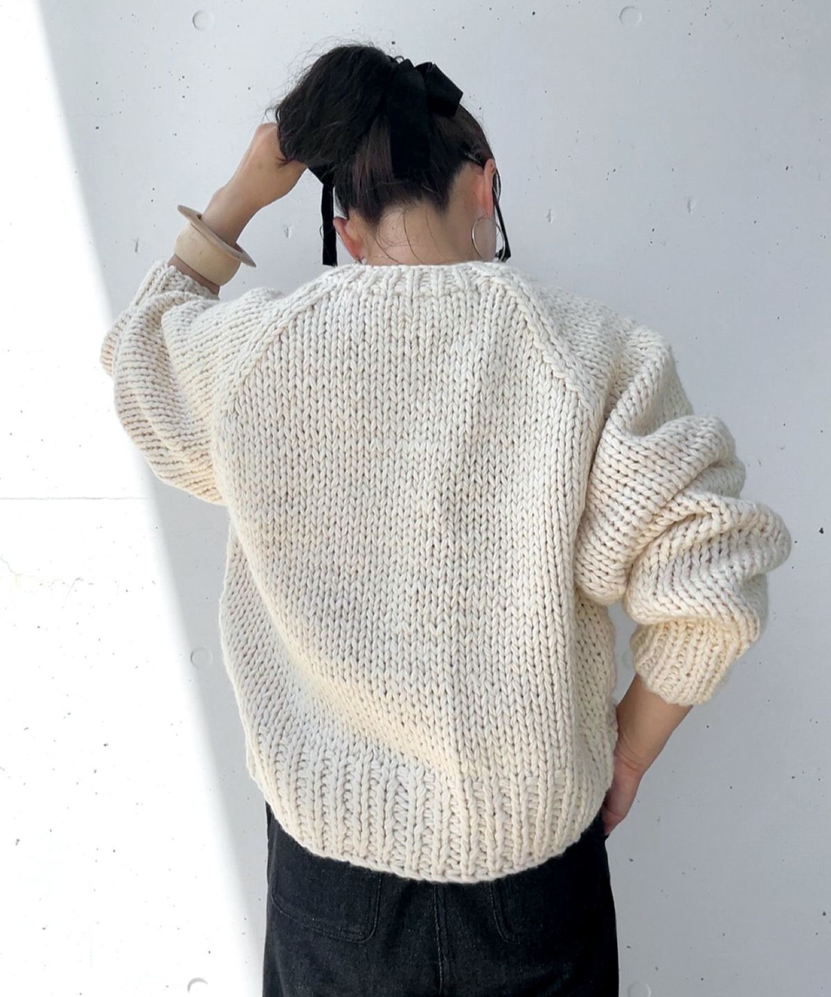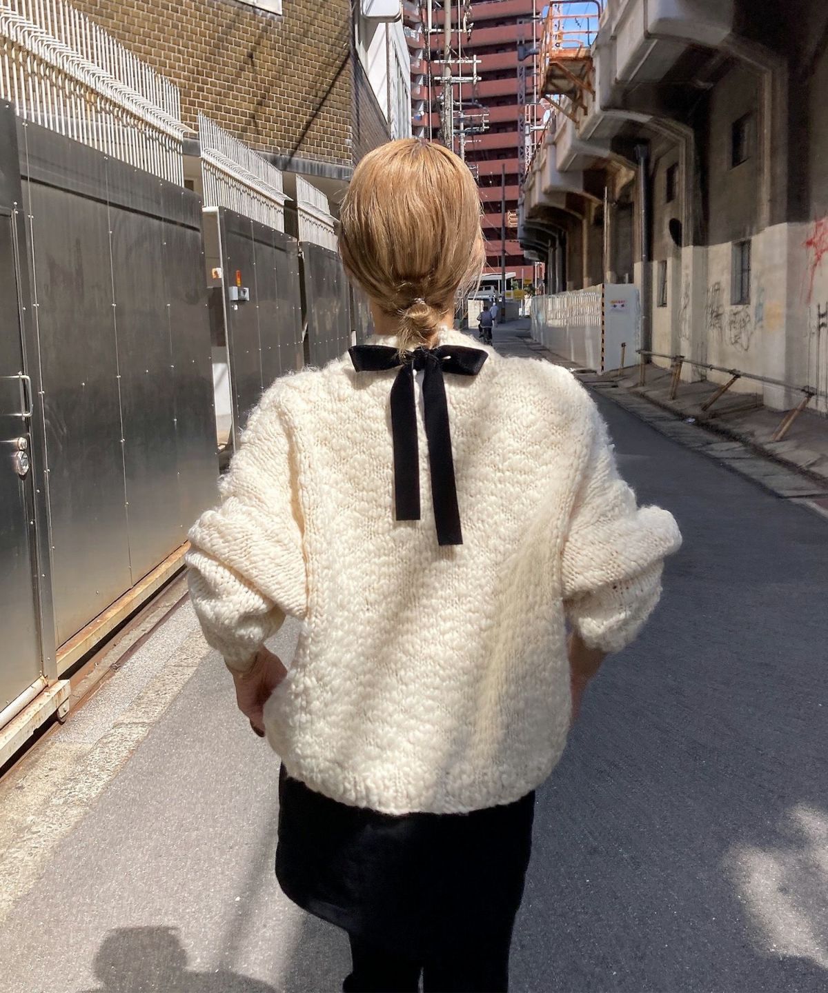 【11/21再入荷アイテム】 Slub yarn ribbon design hand knit (comochi original)